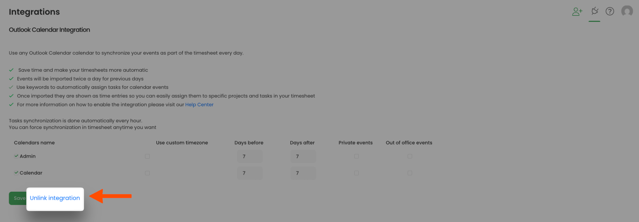 To re-enable the integration first, unlink it, and next click on the Enable integration button and repeat all the steps of setting the integration. The list of your calendar events imported to TimeCamp will be updated immediately.