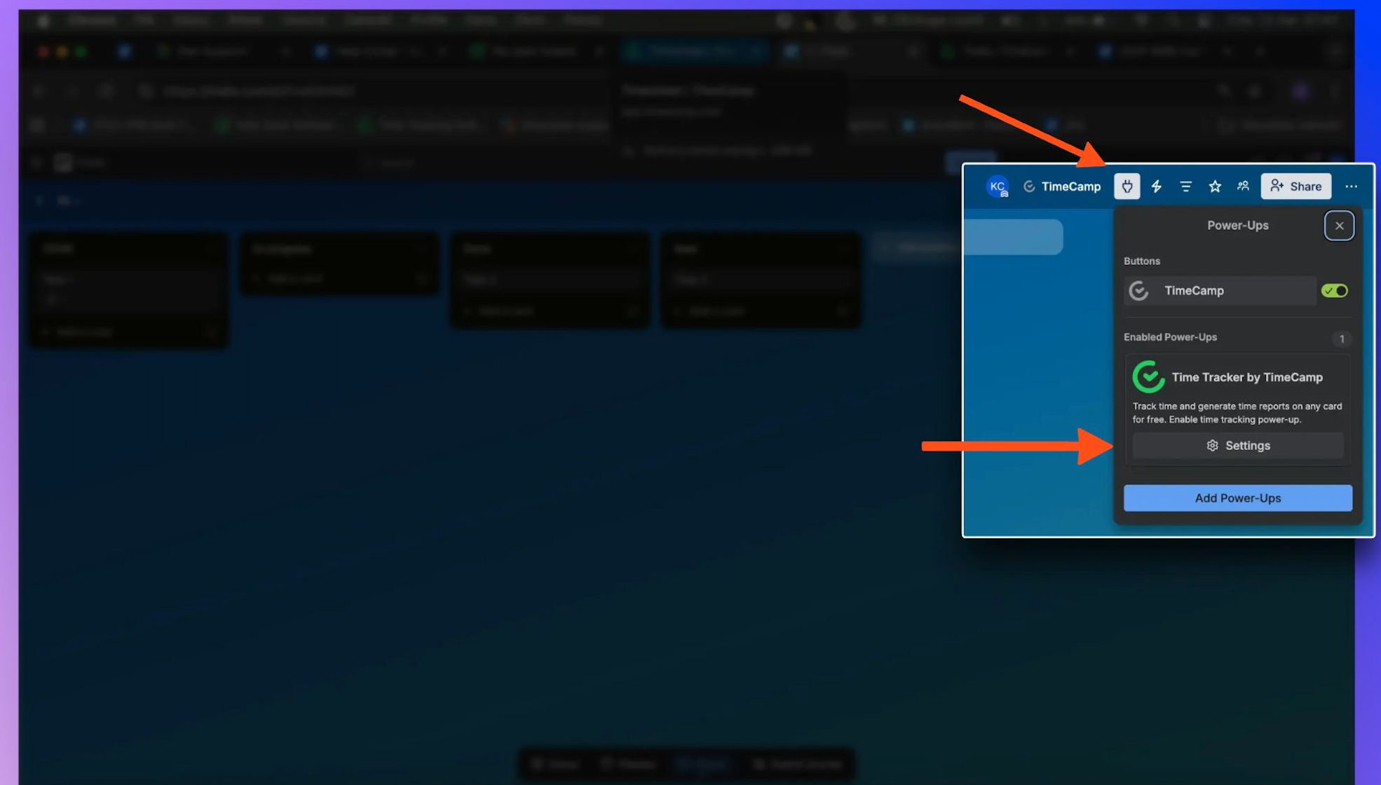- Open the board and click the Power-Ups button above the lists of cards;