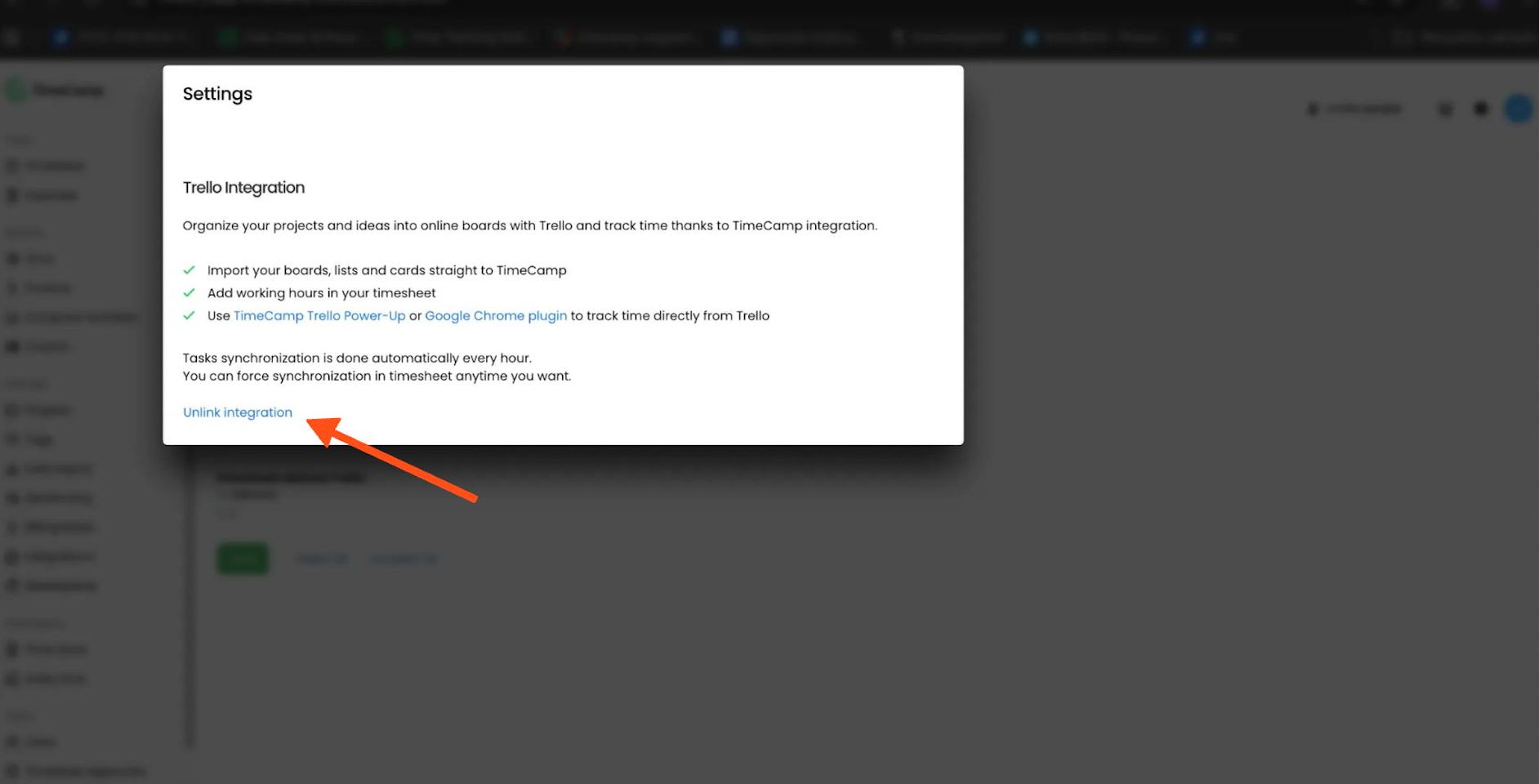 Check if integration on your TimeCamp account is enabled.
